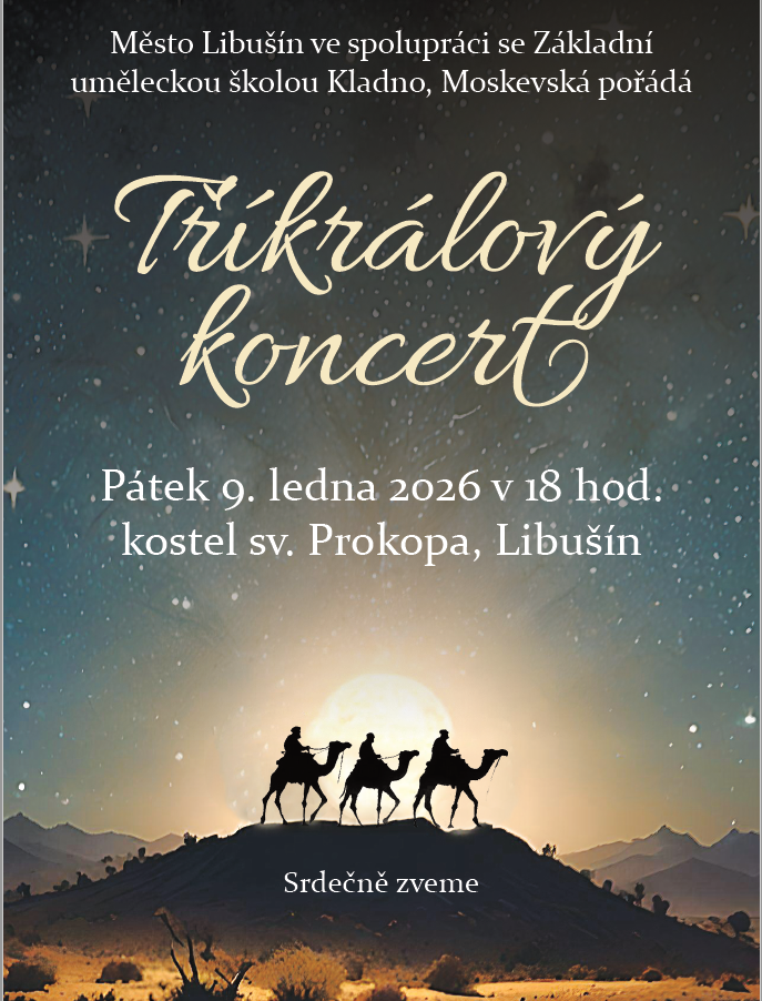 Město Libušín ve spolupráci se Základní uměleckou školou Kladno, Moskevská, zve všechny na "Tříkrálový koncert".